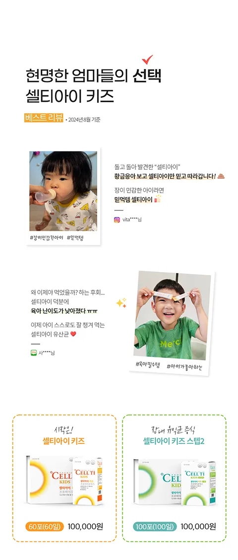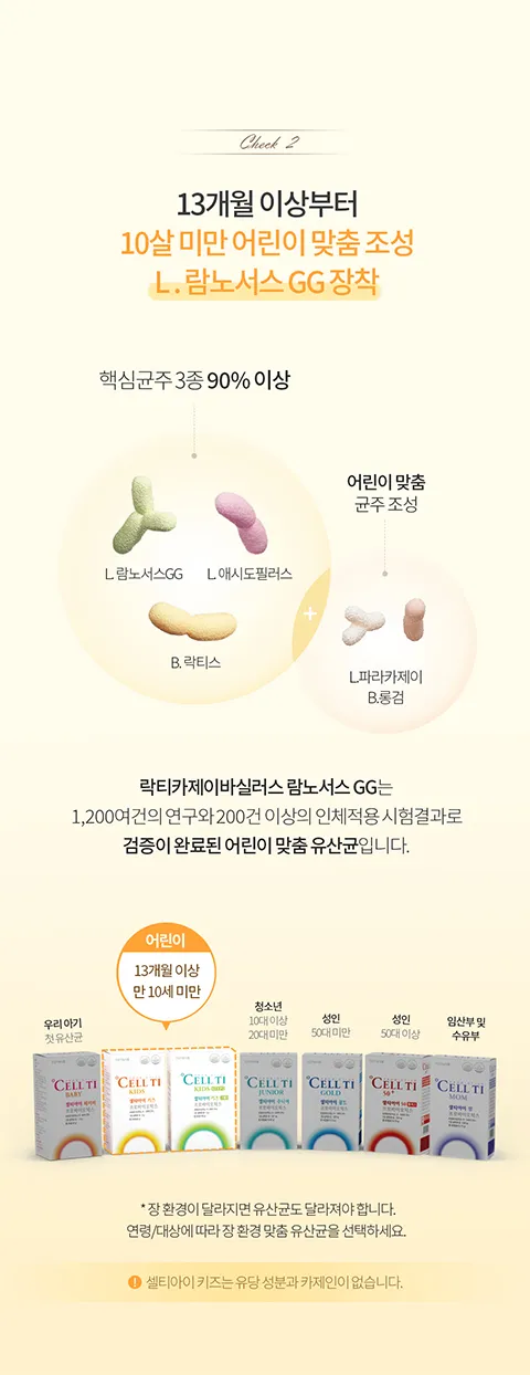[셀티아이 키즈 스텝2] 셀티아이 키즈 섭취 후 장내 유익균 유지를 위한 유산균 (13개월 이상 ~ 만 10세 미만 어린이)