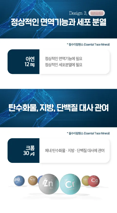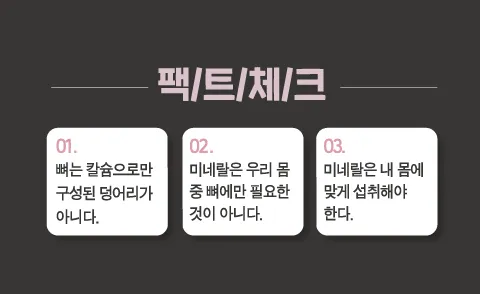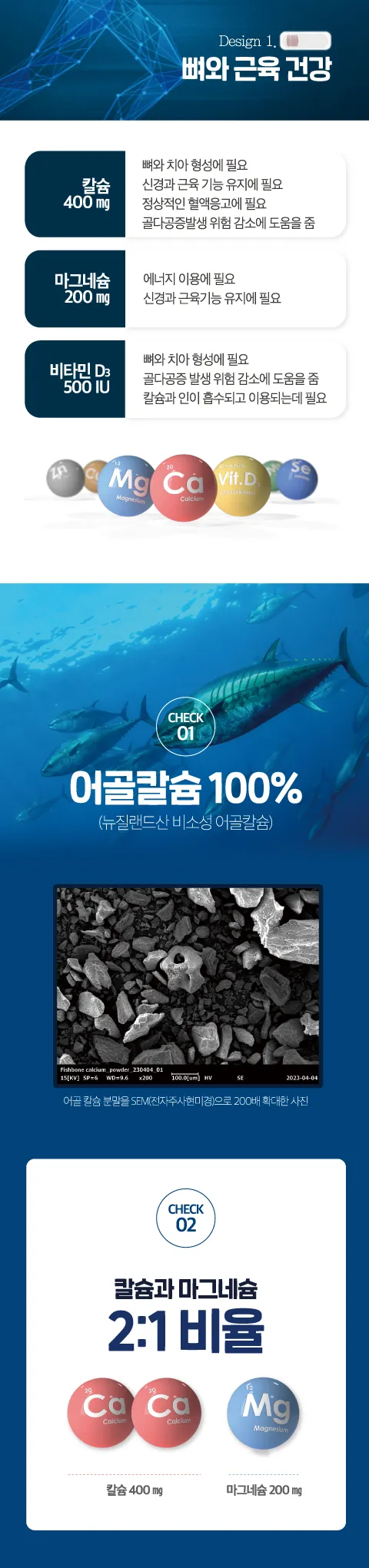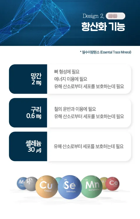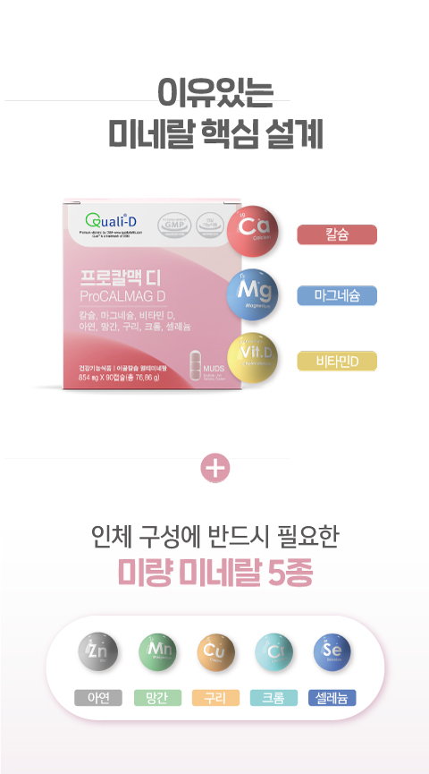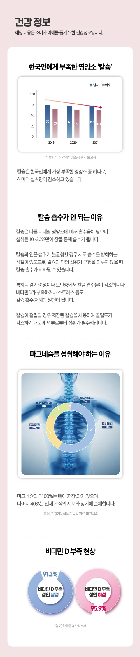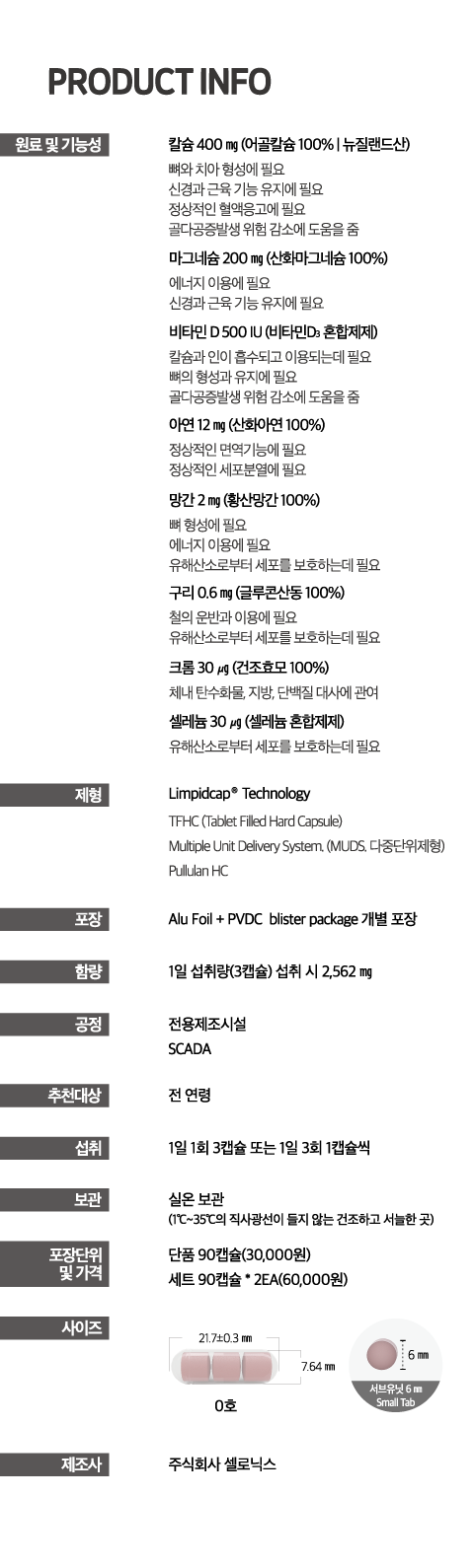 칼슘, 마그네슘, 비타민 D 외 '필수 미량 원소’가 복합 조성되었습니다.