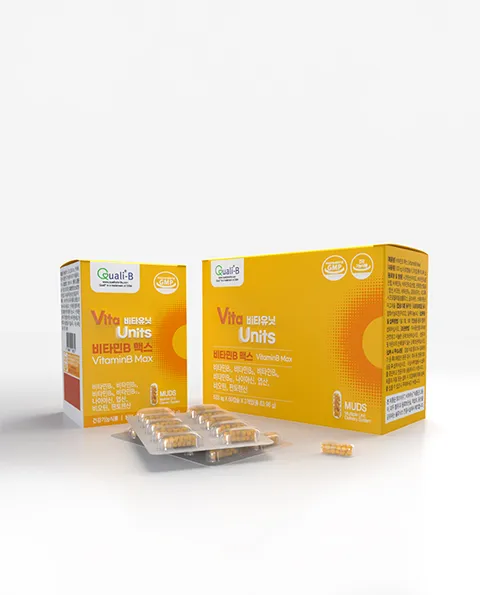 비타유닛 비타민B 맥스는 고함량(1일 영양성분 기준치 대비)의 비타민B군 8종으로 구성되었으며, LimpidCap® MUDS를 적용하여 서브유닛의 함량이 균일하여 정밀한 섭취량 조절이 가능한 제품입니다.