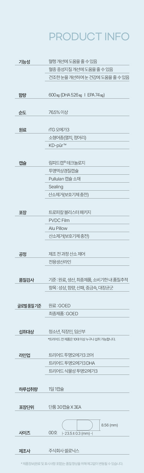 트리어드 투명오메가3는 마지막 한 캡슐까지 안전성을 보장하며,